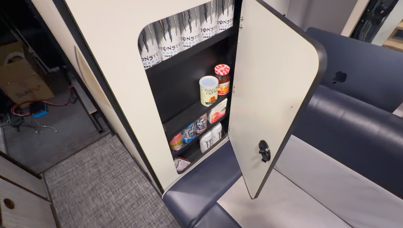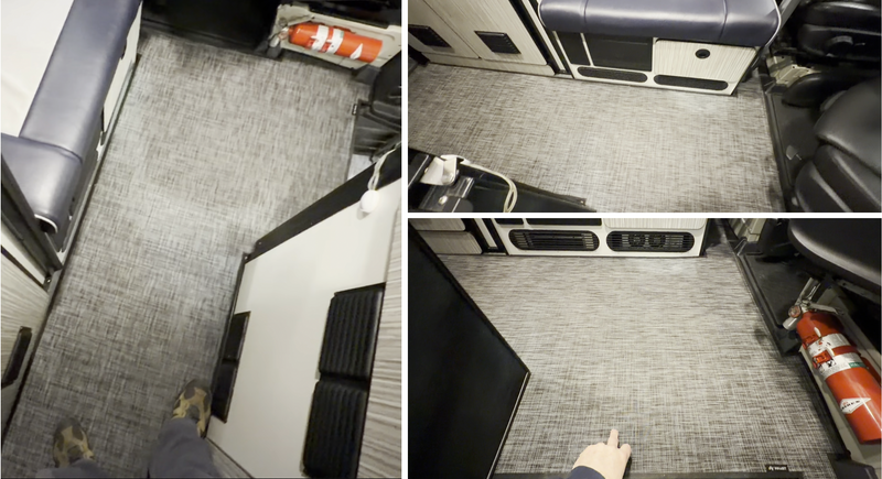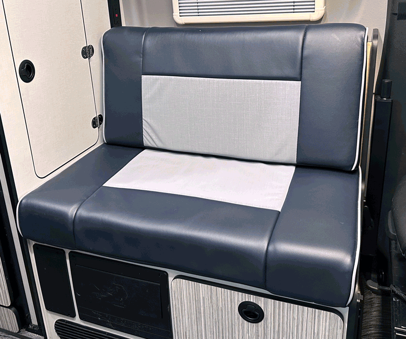 Yes! Mostly. By using the same laminate and trim that Winnebago uses, and carefully modifying the control panel wall to hide blemishes from the stock seat installation, our bench seat rotation looks like it’s straight from the factory with one small exception: a small patch on the floor where the original seat was secured, where the coin pattern of the flooring might not line up perfectly with the existing floor. One option for covering up the patch is a custom Inhabit mat, see below.