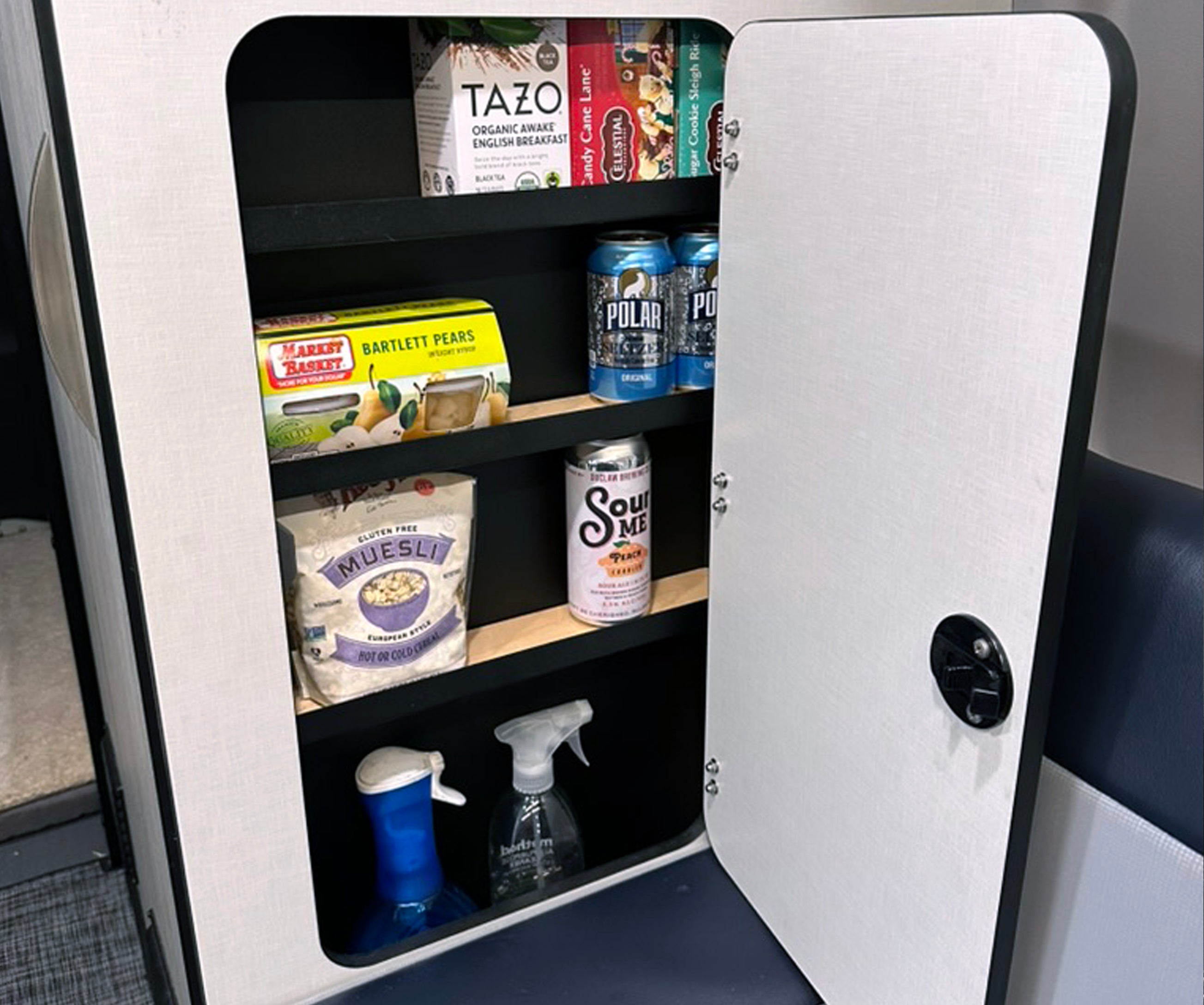 The RoamRig bench seat upgrade looks like it was installed at the factory — not added later. That's because every visible surface of our cabinetry uses the same laminate and trim as Winnebago.